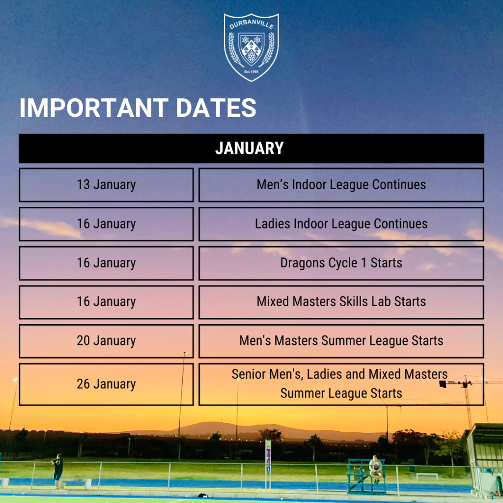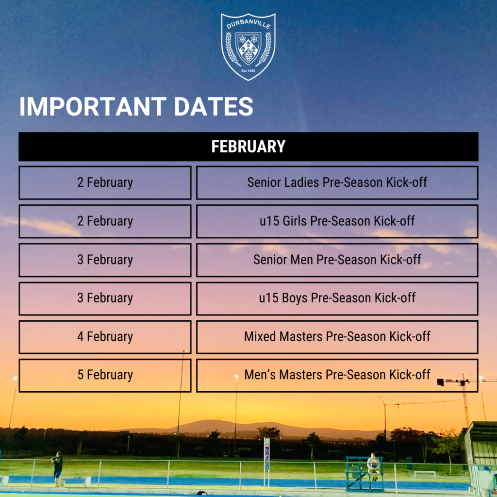 Pre-Season & TrialsSign ups for 2026! Senior Ladies, Senior Men, Men’s Masters,Mixed Masters, u15 Boys and u15 Girls The following age groups are available to join at the club: Masters: Turning 35 years or older in 2026 Seniors: Turning 16 years or older in 2026 U15: Turning 14 or 15 years old in 2026 Which section are you signing up for? Men's Masters A LeagueMen's Masters B LeagueMixed MastersSenior LadiesSenior MenGirls U15Boys U15 Did you play for Durbanville Hockey Club in 2025? YesNo First name: Surname: Mobile/Whatsapp (number of parent/guardion if younger than 18): Your email: Your birthdate (year/month/day): Preferred playing position? GoalkeeperDefenderMidfielderStriker What is the highest league you have played in? If you played club level what league/team did you play in and if you are a scholar what school league/team did you play in.